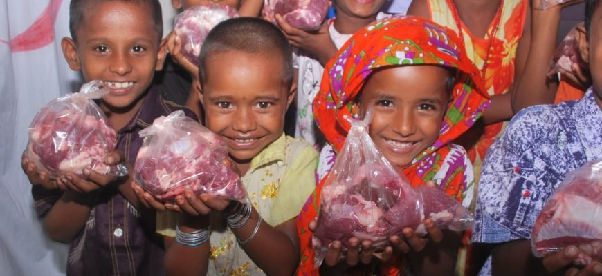 Activities: Ethical sourcing; veterinary checks; slaughter per Islamic guidelines; hygienic cutting/packing; cold‑chain where feasible; distribution to eligible families; post‑event report to donors.
